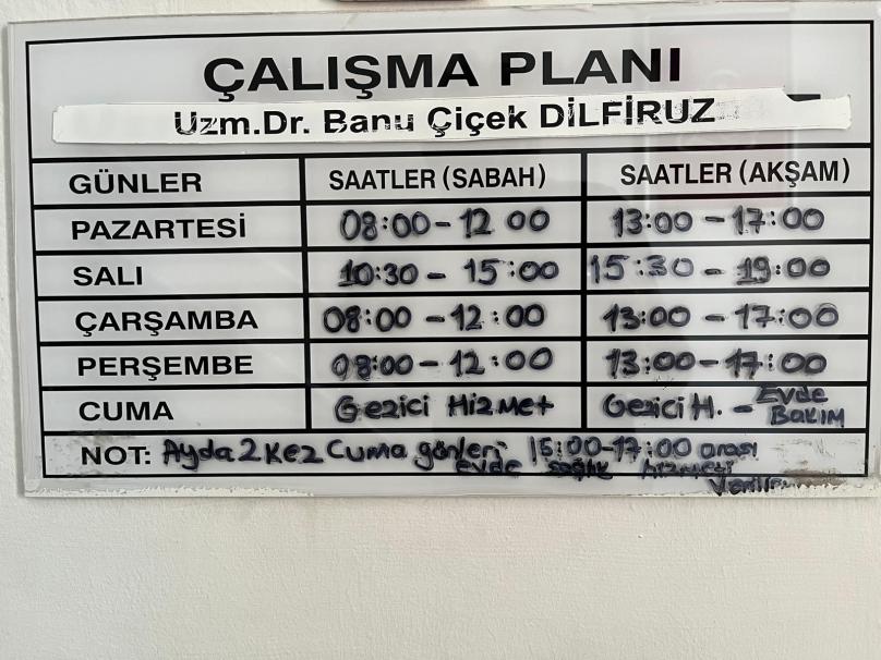 SALI : UZ.DR BANU ÇİÇEK DİLFİRUZ- EBE HÜLYA ALACAN