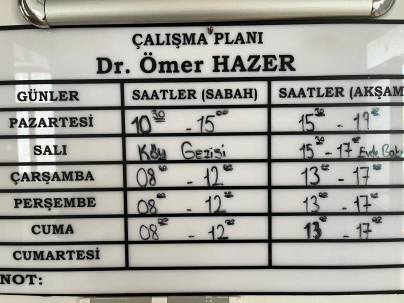 PAZARTESİ : DR. ÖMER HAZER - HEM. YASEMİN KARADAĞ