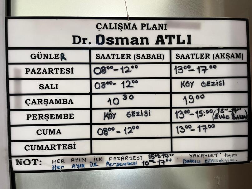 ÇARŞAMBA : DR. OSMAN ATLI - EBE ŞÜKRAN COŞKAN